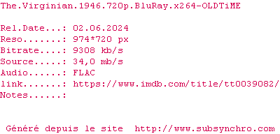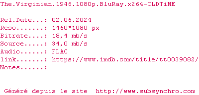 Voir le nfo de la release The.Virginian.1946.1080p.BluRay.x264-OLDTiME