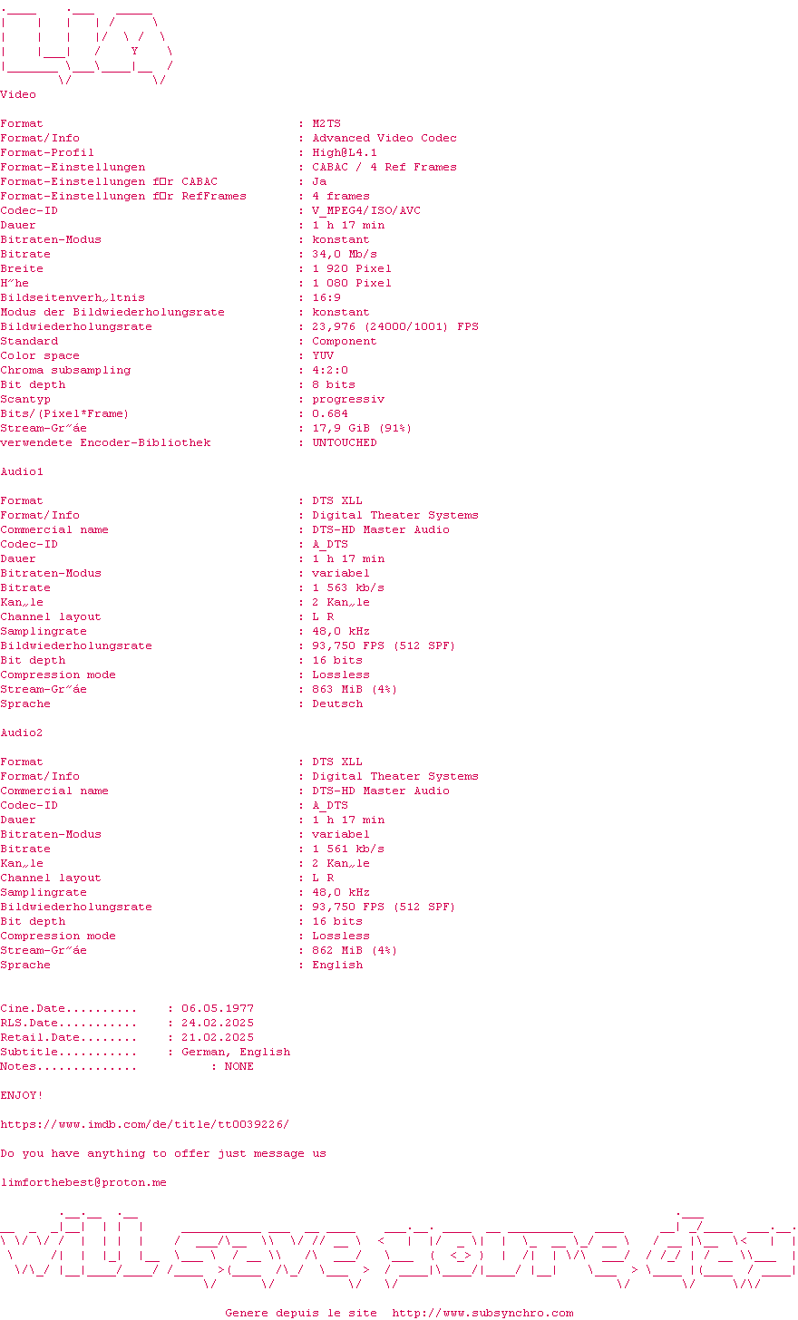 Voir le nfo de la release Buck.Privates.Come.Home.1947.MULTi.COMPLETE.BLURAY-LIM