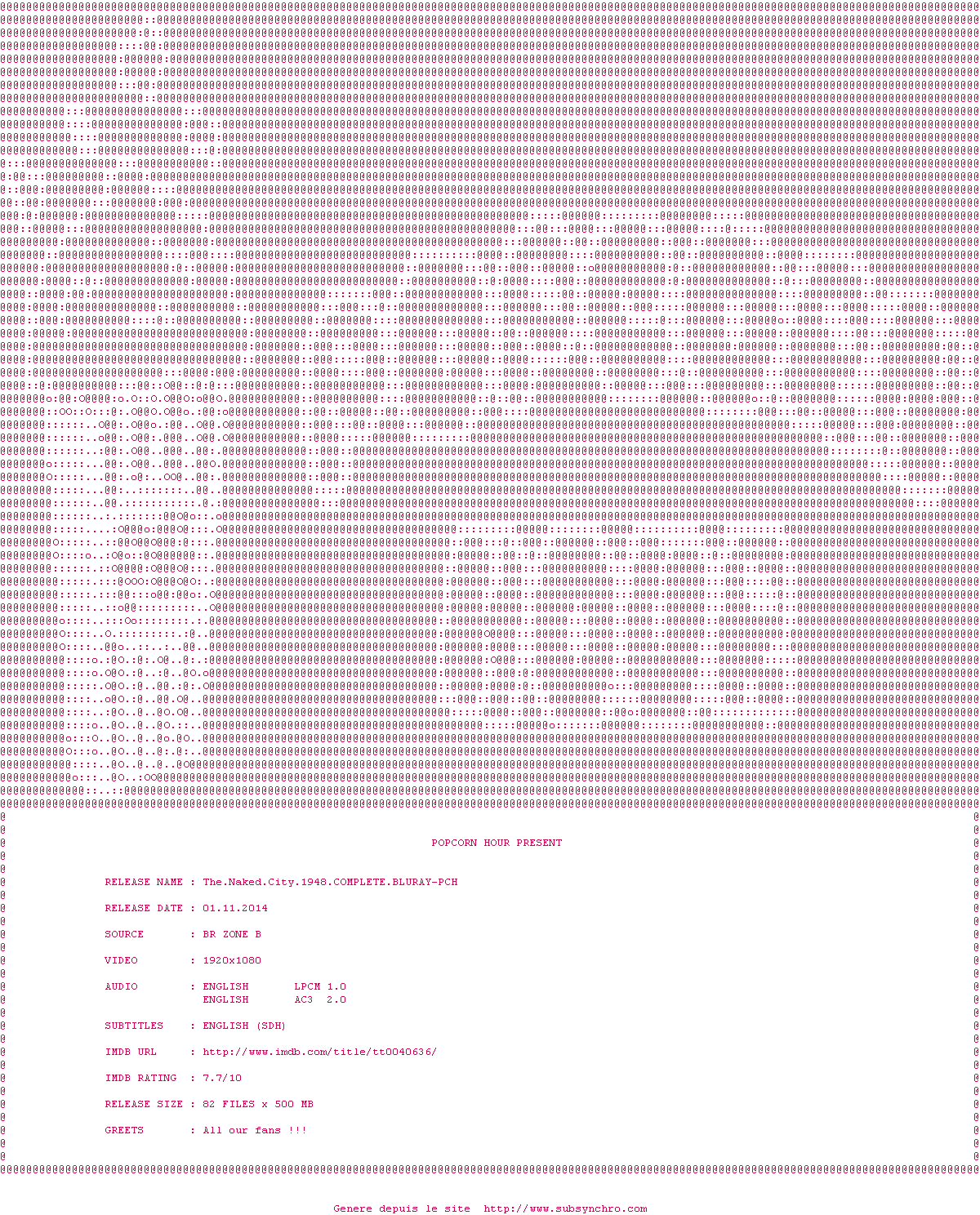 Y avez-vous pense ? Nous proposons déjà 2 sous-titres pour le film La Cité sans voiles. Avez-vous essaye de voir si ces sous-titres etaient compatibles avec cette release ? On vous laisse le soin de tester cela pour nous et de contribuer au site en postant le sous-titre en cas de compatiblite constatee !