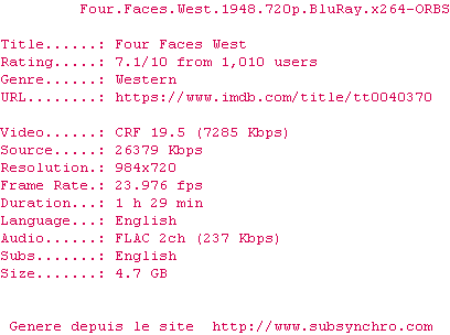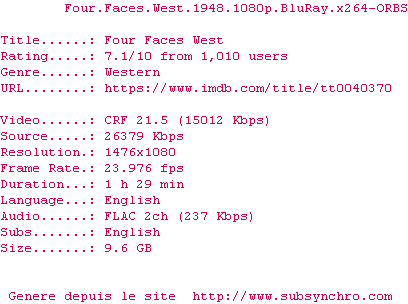 Voir le nfo de la release Four.Faces.West.1948.1080p.BluRay.x264-ORBS