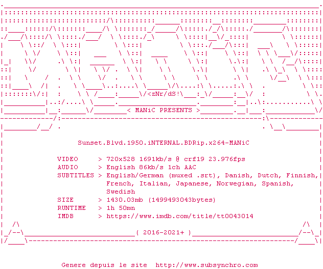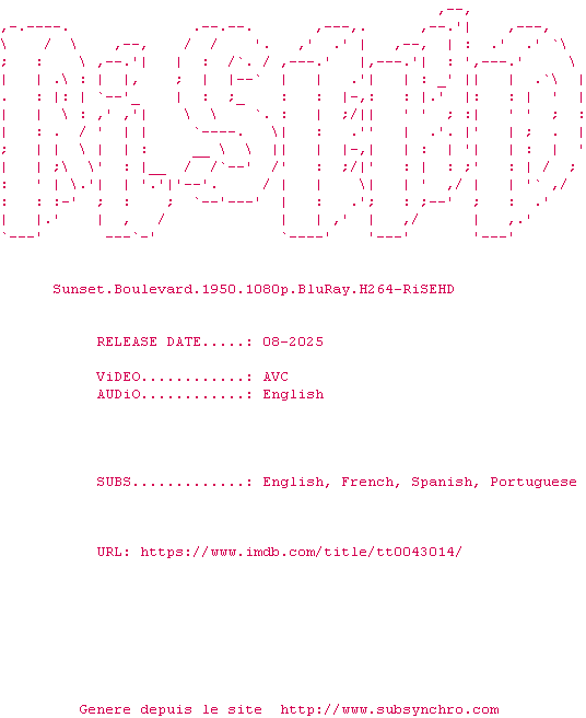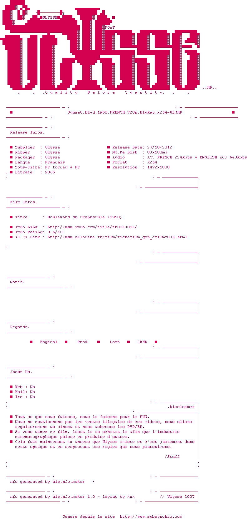 Voir le nfo de la release Sunset.Blvd.1950.MULTi.1080p.BluRay.x264-ULSHD