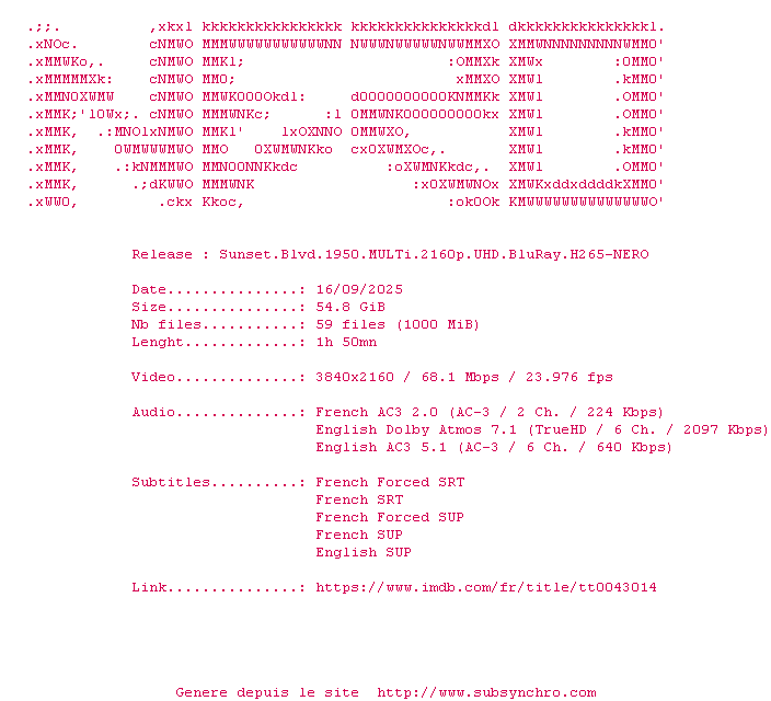 Voir le nfo de la release Sunset.Blvd.1950.MULTi.2160p.UHD.BluRay.H265-NERO