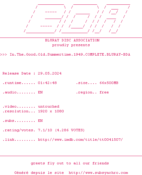 Voir le nfo de la release In.The.Good.Old.Summertime.1949.COMPLETE.BLURAY-BDA