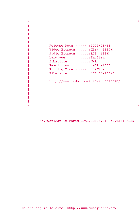 Voir le nfo de la release An.American.In.Paris.1951.1080p.BluRay.x264-FLHD