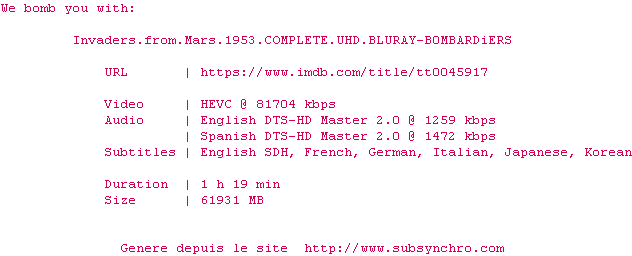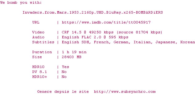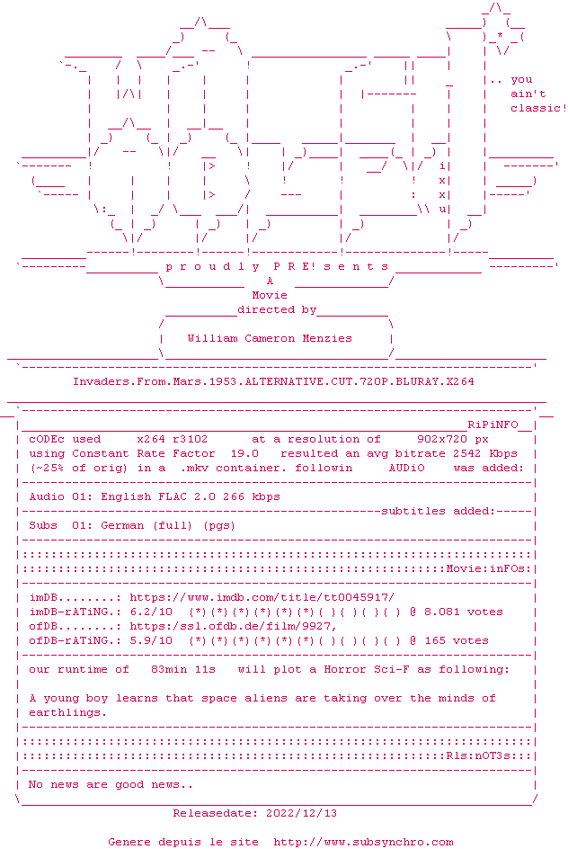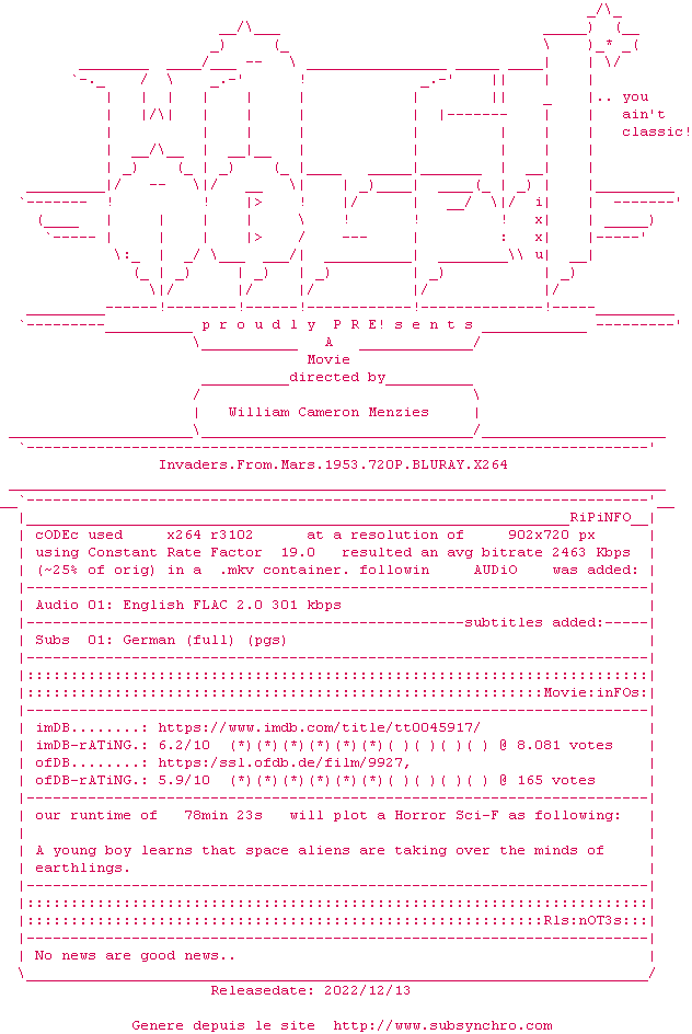 Les Envahisseurs de la planète rouge (Invaders from Mars) , realise en 1953