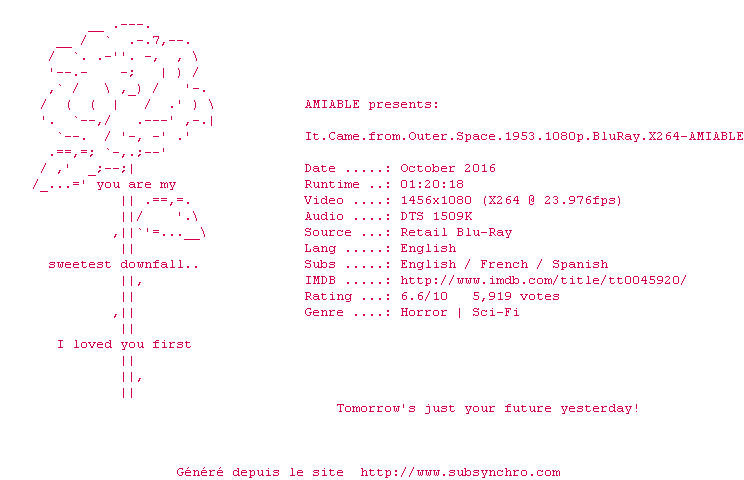 Voir le nfo de la release It.Came.From.Outer.Space.1953.1080p.BluRay.x264-AMIABLE
