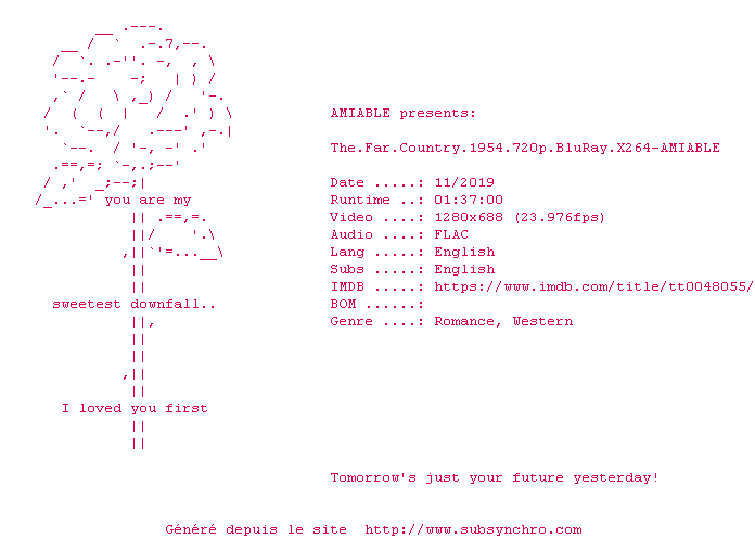 Voir le nfo de la release The.Far.Country.1954.720p.BluRay.x264-AMIABLE