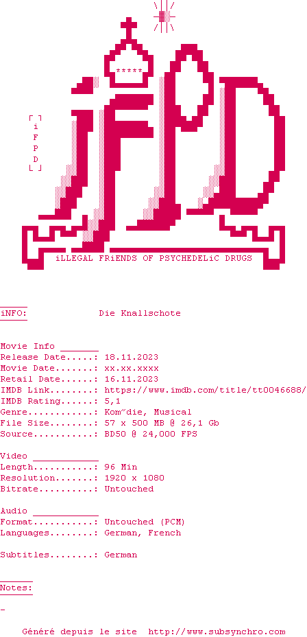 Voir le nfo de la release Die.Knallschote.1954.DUAL.COMPLETE.BLURAY-iFPD