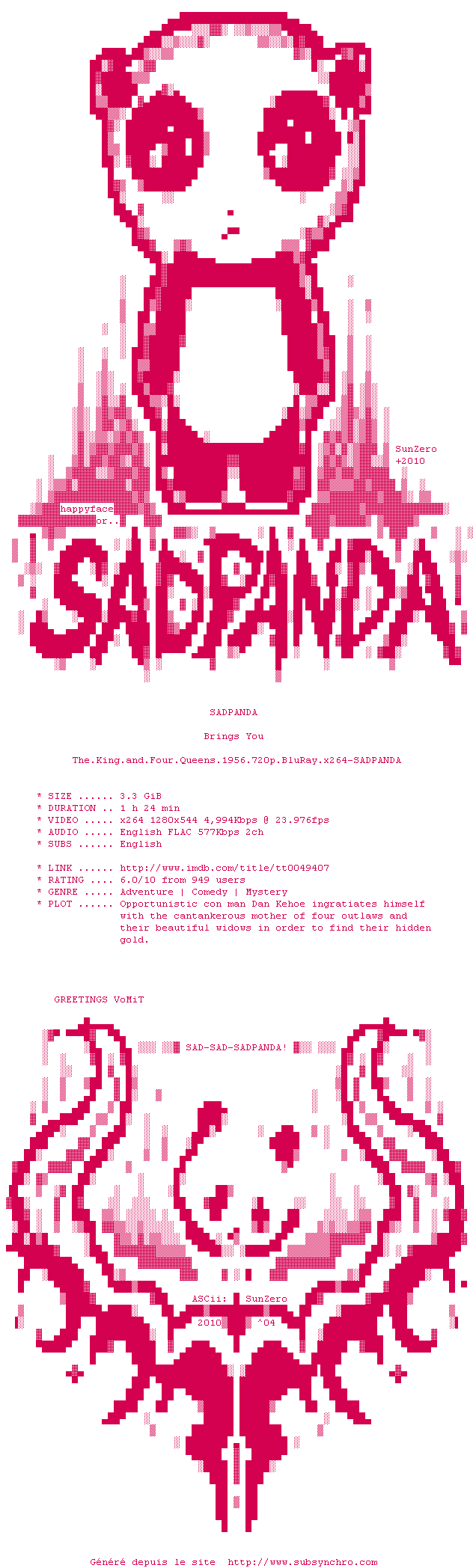 Voir le nfo de la release The.King.And.Four.Queens.1956.720p.BluRay.x264-SADPANDA