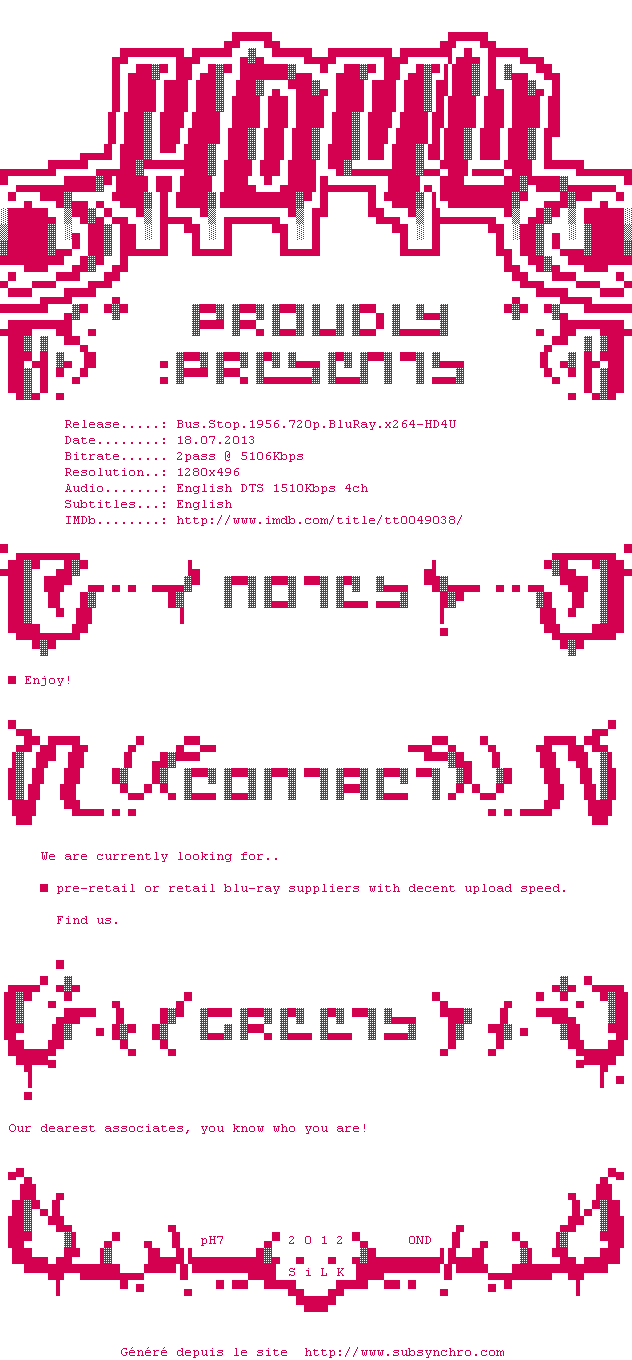 Voir le nfo de la release Bus.Stop.1956.1080p.BluRay.x264-HD4U