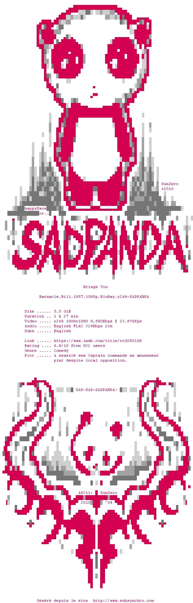 Voir le nfo de la release Barnacle.Bill.1957.720p.BluRay.x264-SADPANDA