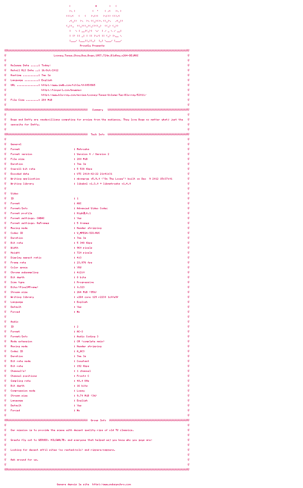 Voir le nfo de la release Looney.Tunes.Show.Biz.Bugs.1957.RERiP.1080p.BluRay.x264-DEiMOS