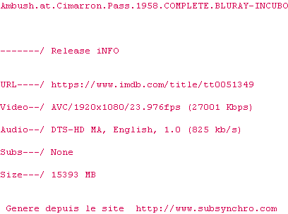 Voir le nfo de la release Ambush.At.Cimarron.Pass.1958.COMPLETE.BLURAY-INCUBO