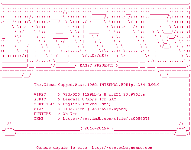 Y avez-vous pense ? Nous proposons déjà 1764 sous-titres pour le film L'Étoile cachée / Capped Star. Avez-vous essaye de voir si ces sous-titres etaient compatibles avec cette release ? On vous laisse le soin de tester cela pour nous et de contribuer au site en postant le sous-titre en cas de compatiblite constatee !