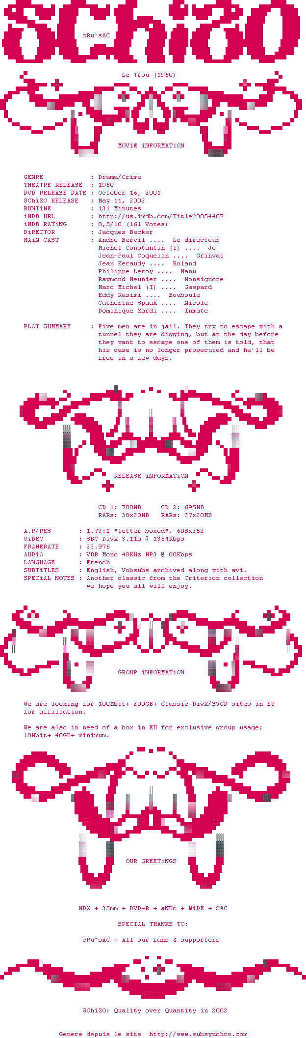 Accusé de tentative de meurtre sur sa femme, Claude Gaspard est enfermé à la prison de la Santé. Ses quatre compagnons de cellule lui font part de leur désir d'évasion et creusent, avec une énergie farouche, un tunnel qui les mènera à la liberté. Leur plan aboutira-t-il ?