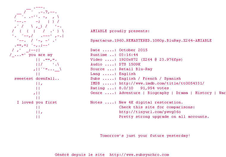 Telechargez le RSS « Fichier de la release Spartacus.1960.REMASTERED.1080p.BluRay.x264-AMIABLE »