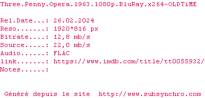 Voir le nfo de la release Three.Penny.Opera.1963.1080p.BluRay.x264-OLDTiME