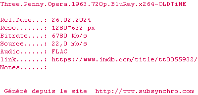 Voir le nfo de la release Three.Penny.Opera.1963.BDRip.x264-OLDTiME