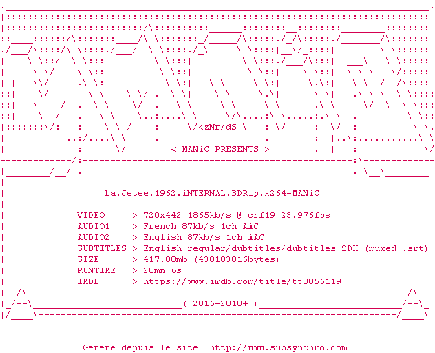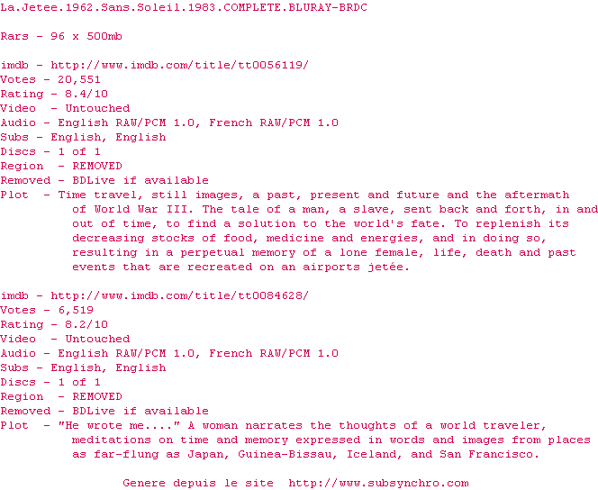 Le commentaire de Nuclear Commente par Nuclear (397), Le Mardi 01 Novembre 2011 à 22h28 Un roman photo dont le scénario a inspiré Terry Gilliam pour son "Armée des 12 Singes" (1996). 1 0