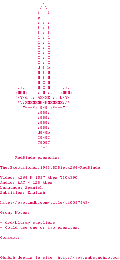 Voir le nfo de la release The.Executioner.1963.BDRip.x264-RedBlade