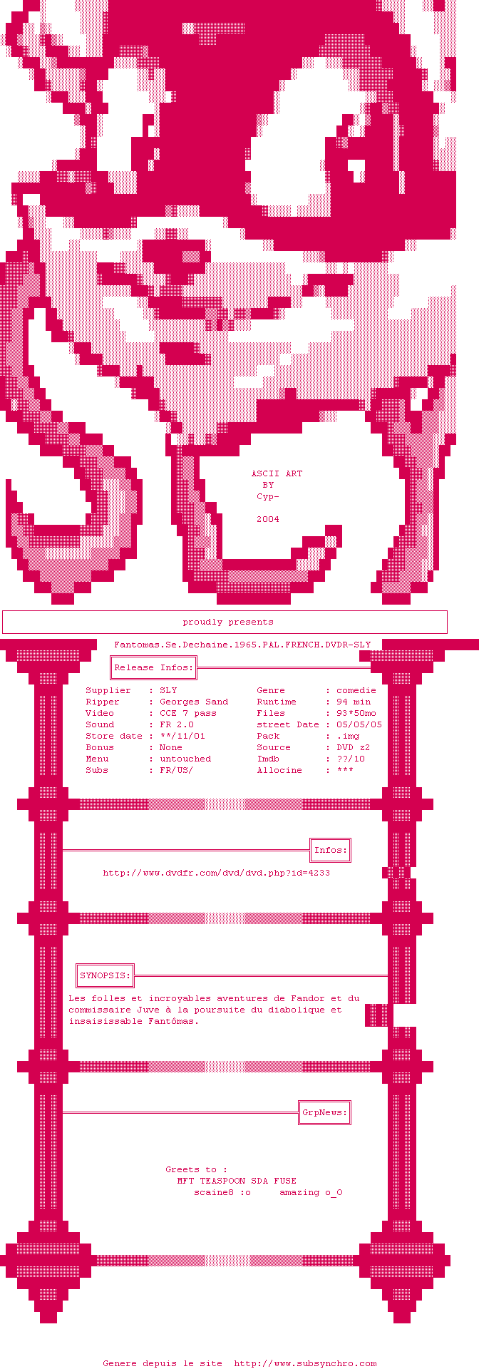 Voir le nfo de la release Fantomas.Se.Dechaine.1965.PAL.FRENCH.DVDR-SLY