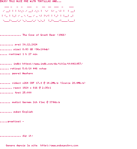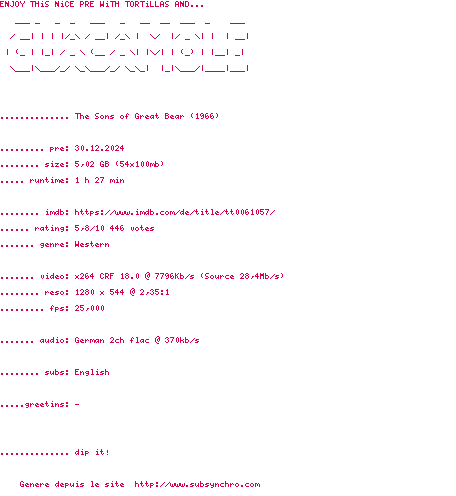 Le Fils de la Grande Ourse / The Sons of Great Bear (Die Söhne der großen Bärin) , realise en 1966