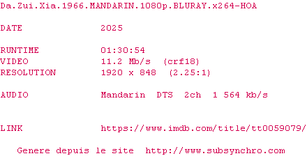 Voir le nfo de la release Da.Zui.Xia.1966.MANDARIN.1080p.BLURAY.x264-HOA