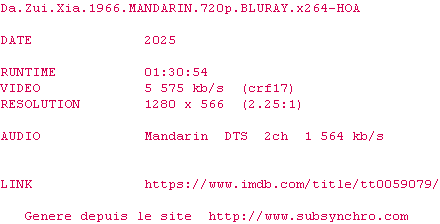Voir le nfo de la release Da.Zui.Xia.1966.MANDARIN.720p.BLURAY.x264-HOa