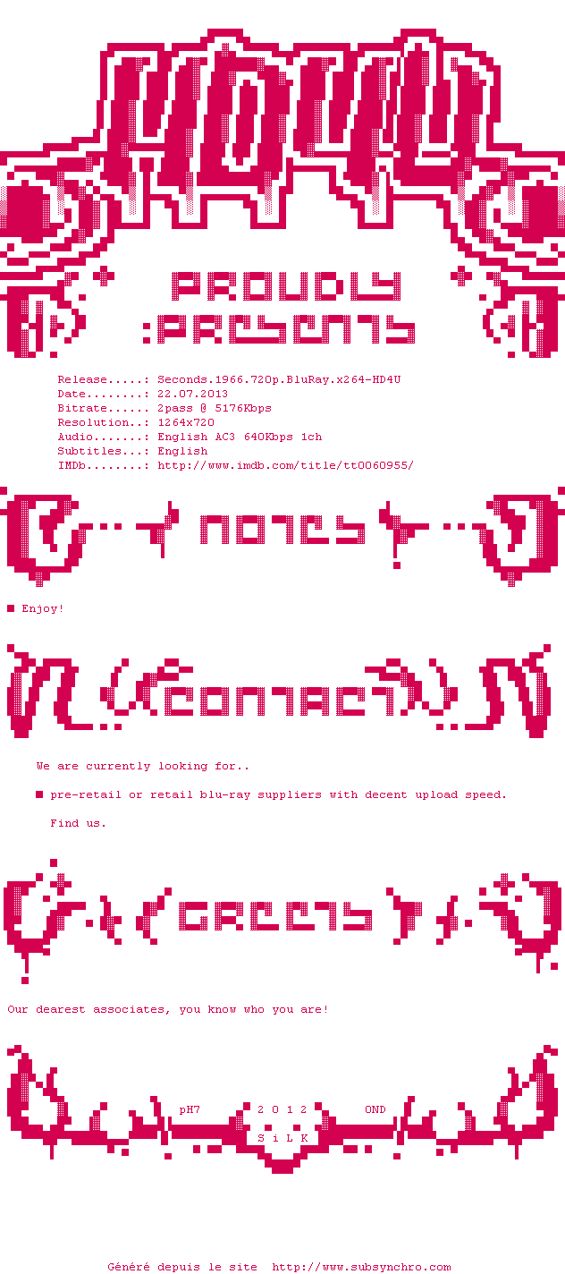 Telechargez le RSS « Fichier de la release Seconds.1966.720p.BluRay.x264-HD4U »