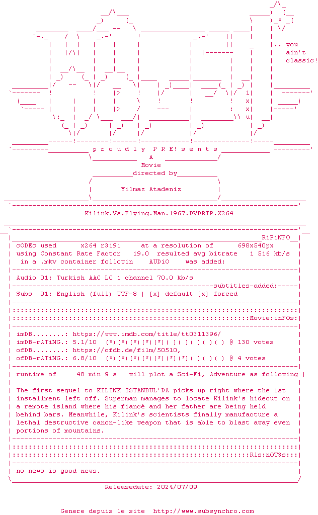 Voir le nfo de la release Kilink.Vs.Flying.Man.1967.DVDRIP.x264-WATCHABLE