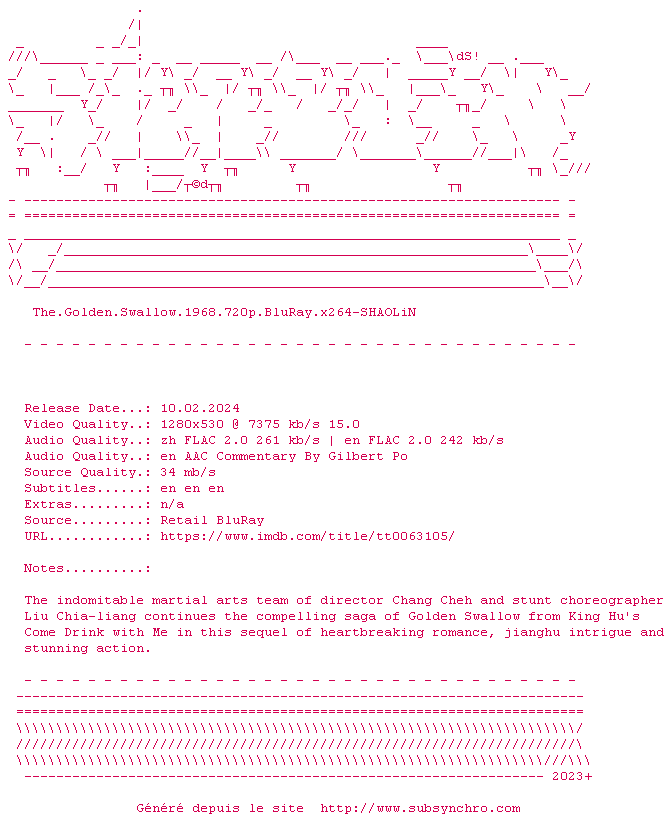 Le Retour de l'hirondelle d'or / Golden Swallow (Jin yan zi) , realise en 1968