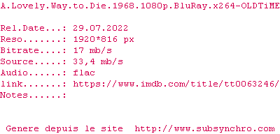 Voir le nfo de la release A.Lovely.Way.To.Die.1968.1080p.BluRay.x264-OLDTiME