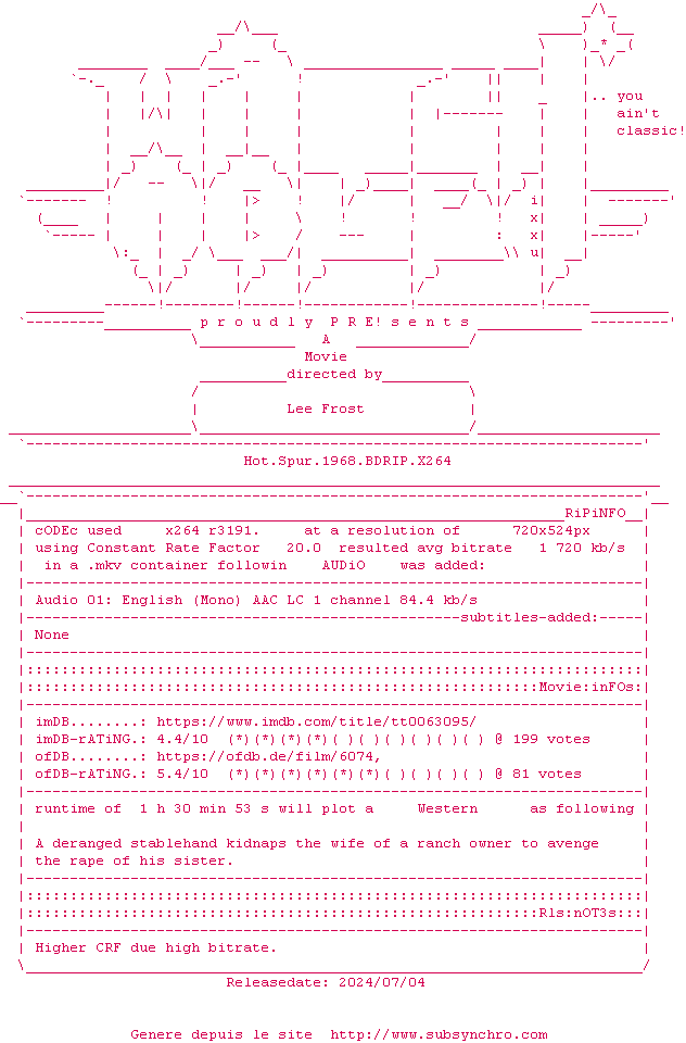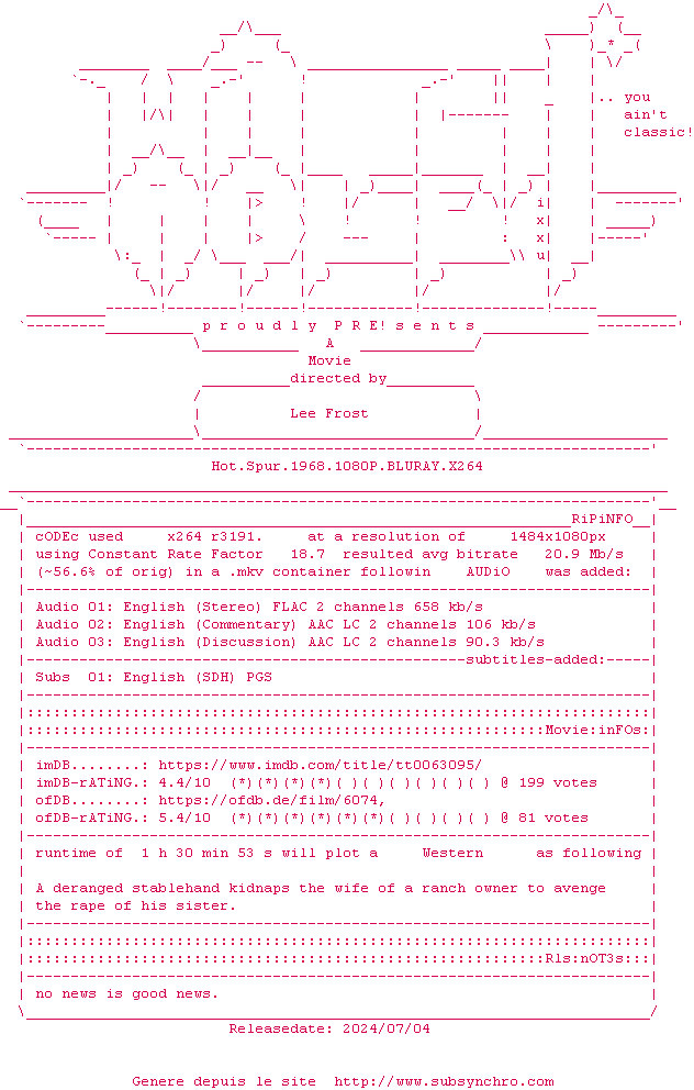 Voir le nfo de la release Hot.Spur.1968.1080P.BLURAY.H264-UNDERTAKERS