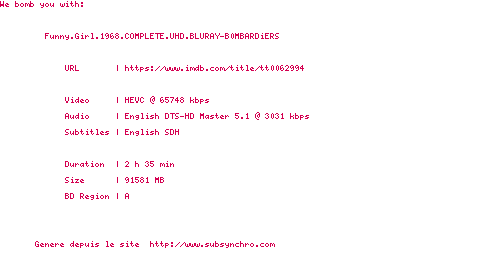 Voir le nfo de la release Funny.Girl.1968.COMPLETE.UHD.BLURAY-B0MBARDiERS