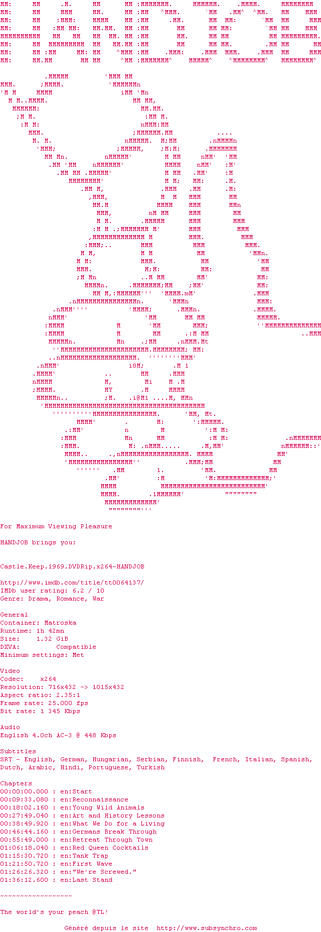 Voir le nfo de la release Castle.Keep.1969.DVDRip.x264-HANDJOB
