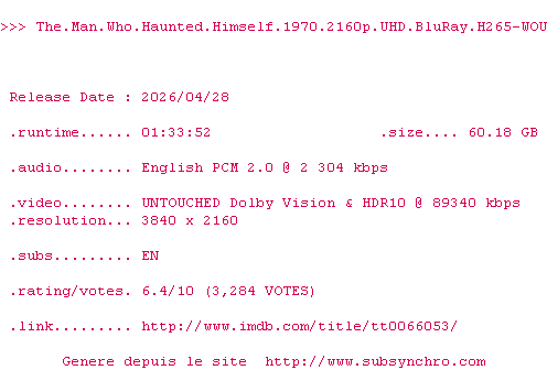 La release The.Man.Who.Haunted.Himself.1970.2160p.UHD.BluRay.H265-WOU est en 4K