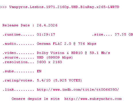 La release Vampyros.Lesbos.1971.2160p.UHD.BluRay.x265-LWRTD est en 4K