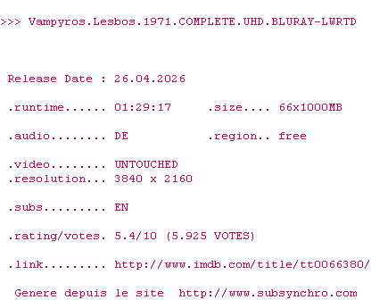 La release Vampyros.Lesbos.1971.COMPLETE.UHD.BLURAY-LWRTD est en 4K