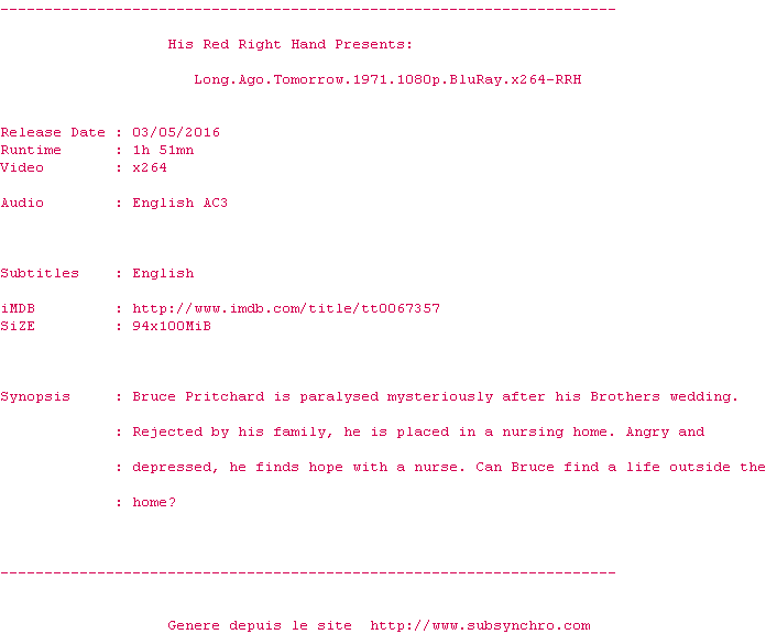 "Long Ago, Tomorrow" est le titre choisi pour la sortie américaine .