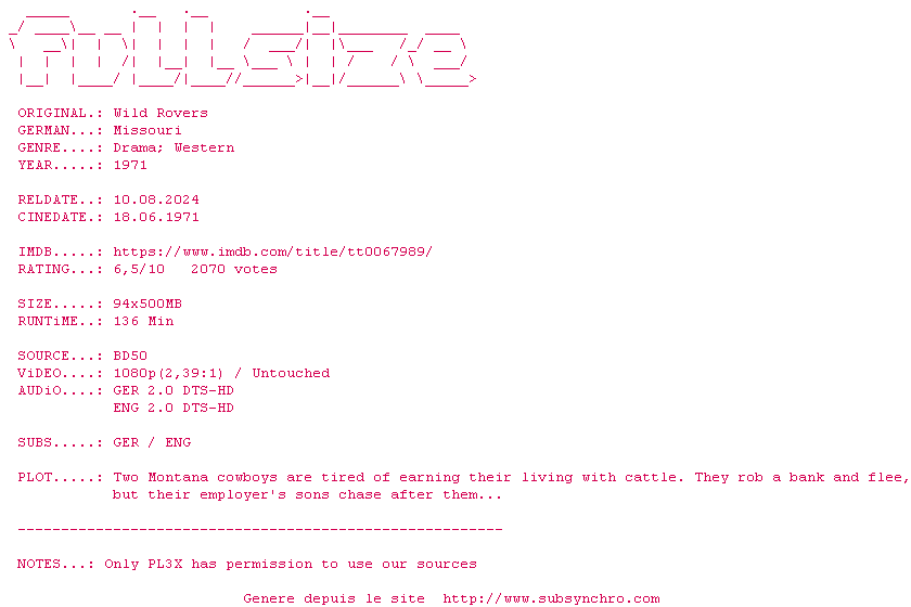 Deux hommes dans l'Ouest (The Wild Rovers) , realise en 1971