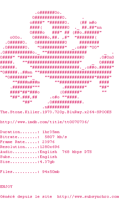 Voir le nfo de la release The.Stone.Killer.1973.720p.BluRay.x264-SPOOKS