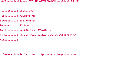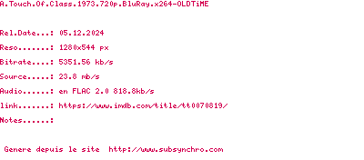 Voir le nfo de la release A.Touch.Of.Class.1973.1080p.BluRay.x264-OLDTiME