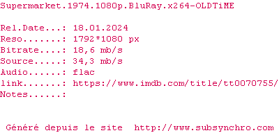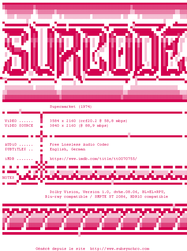 Voir le nfo de la release Supermarket.1974.2160p.UHD.BluRay.x265-SURCODE