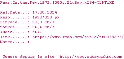 Voir le nfo de la release Fear.Is.The.Key.1972.COMPLETE.BLURAY-UNTOUCHED