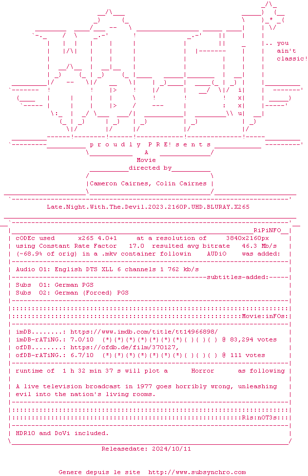 NFO de Bell.From.Hell.1973.REPACK.DUBBED.DVDRIP.x264-WATCHABLE