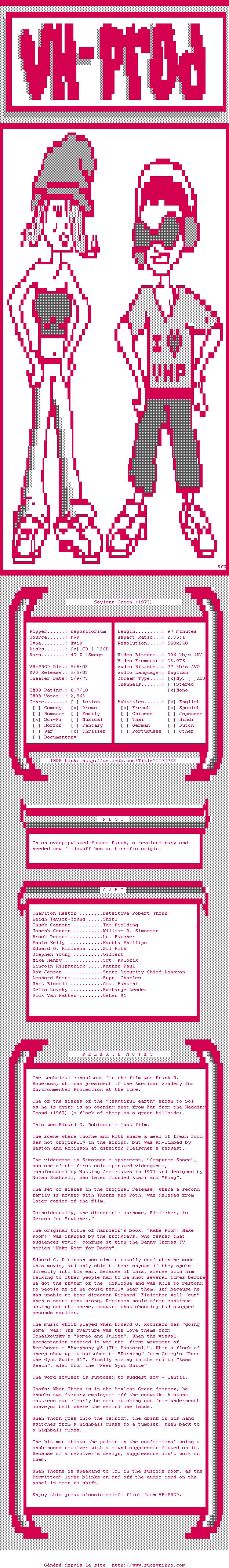 Soylent.Green.1973.DVDRip.XviD-VH-PROD.srt Ce fichier a été testé et validé par Gnapgnap Ajouté par Gnapgnap Ajoute le 09-05-2013 17:05:19 Format : SRT Italique : Oui Taille : 0.00Ko Telechargement : 47 Testé par le membre Ajouter cette release à ma collection en cas de telechargement des sous-titres 0 0 0 Telecharger le ZiP contenant NFO, Affiche, Sous-titre (*.srt) Commentez le fichier Soylent.Green.1973.DVDRip.XviD-VH-PROD.srt Commentez le fichier Soylent.Green.1973.DVDRip.XviD-VH-PROD.srt Commentez ce fichier Le fichier 10200-1368111919.srt n'existe pas ! Telechargez le RSS « Fichier de la release Soylent.Green.1973.DVDRip.XviD-VH-PROD » Retour au film « Soleil vert »