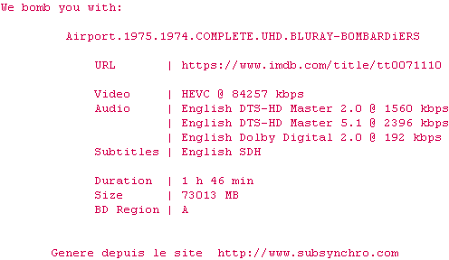 Voir le nfo de la release Airport.1975.1974.2160p.UHD.BluRay.H265-MALUS