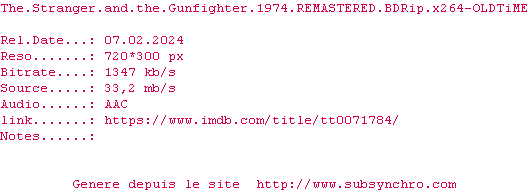 Voir le nfo de la release The.Stranger.And.The.Gunfighter.1974.720p.BluRay.x264-OLDTiME