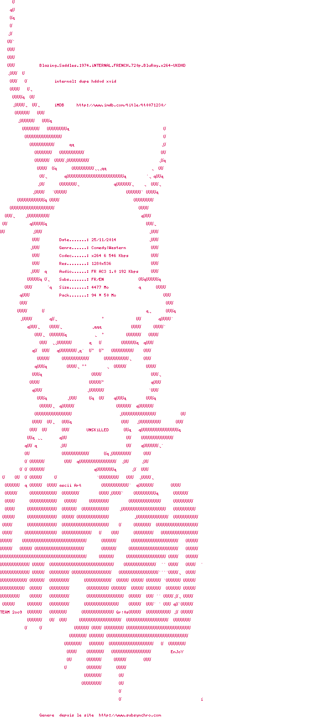 Voir le nfo de la release Blazing.Saddles.1974.iNTERNAL.FRENCH.720p.BluRay.x264-UKDHD
