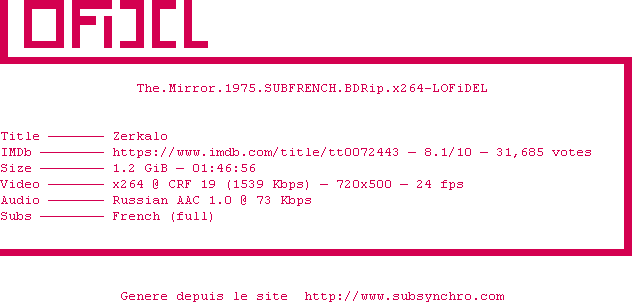 Un homme mourant d'une quarantaine d'années se remémore son passé. Son enfance, sa mère, la guerre, des moments et des choses intimes qui racontent l'histoire récente de toute la nation russe.
